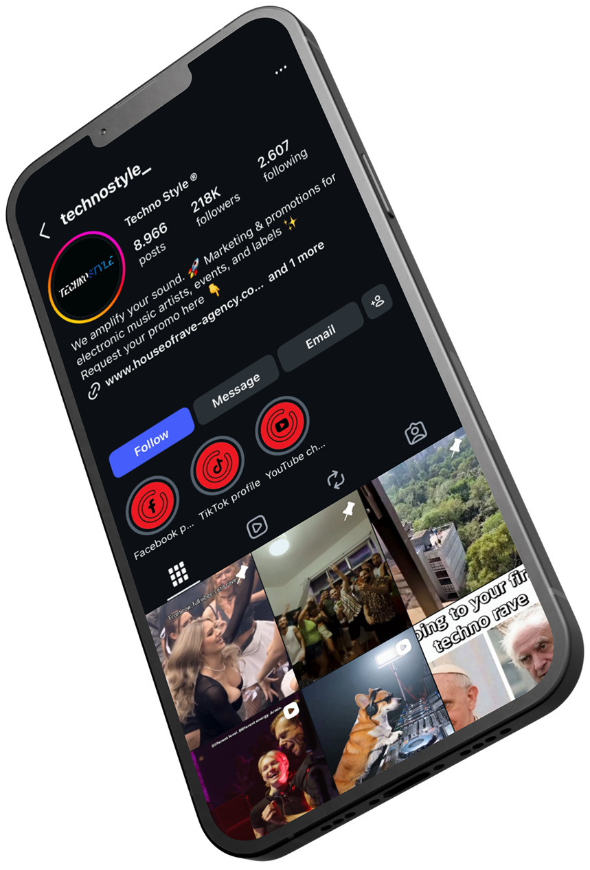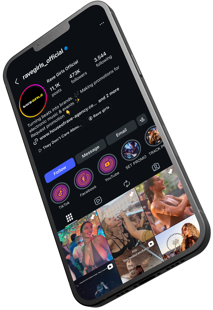 We connect clubs, festivals, record labels, brands, producers, and DJs through strategic partnerships with leading promo platforms, creating a seamless network within the electronic music scene. Our mission is to empower the global music community by bringing artists, fans, and industry leaders together, fostering collaboration and growth. With our extensive reach across social media and dynamic content, we provide the tools and connections to elevate your brand and create unforgettable experiences that resonate with your audience.